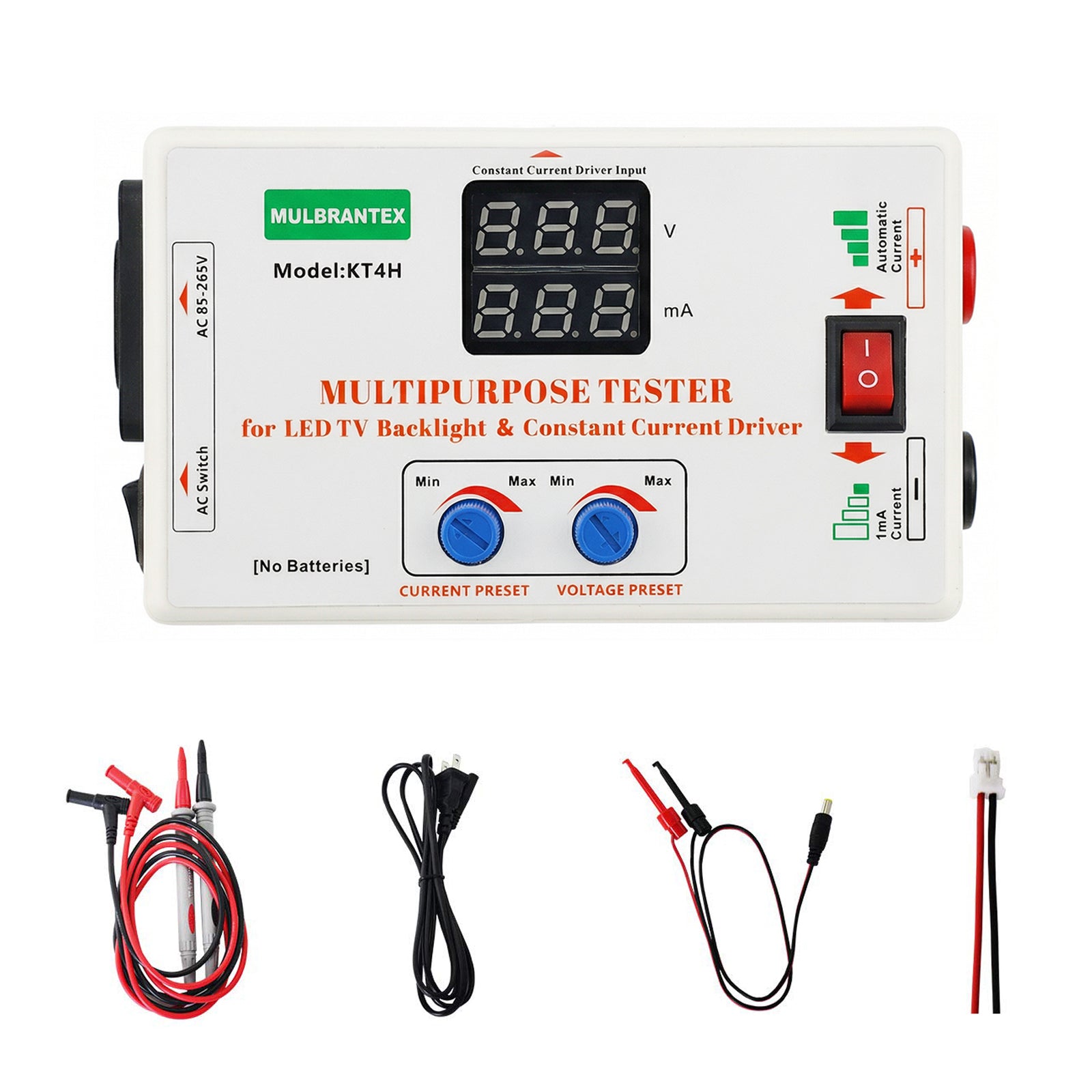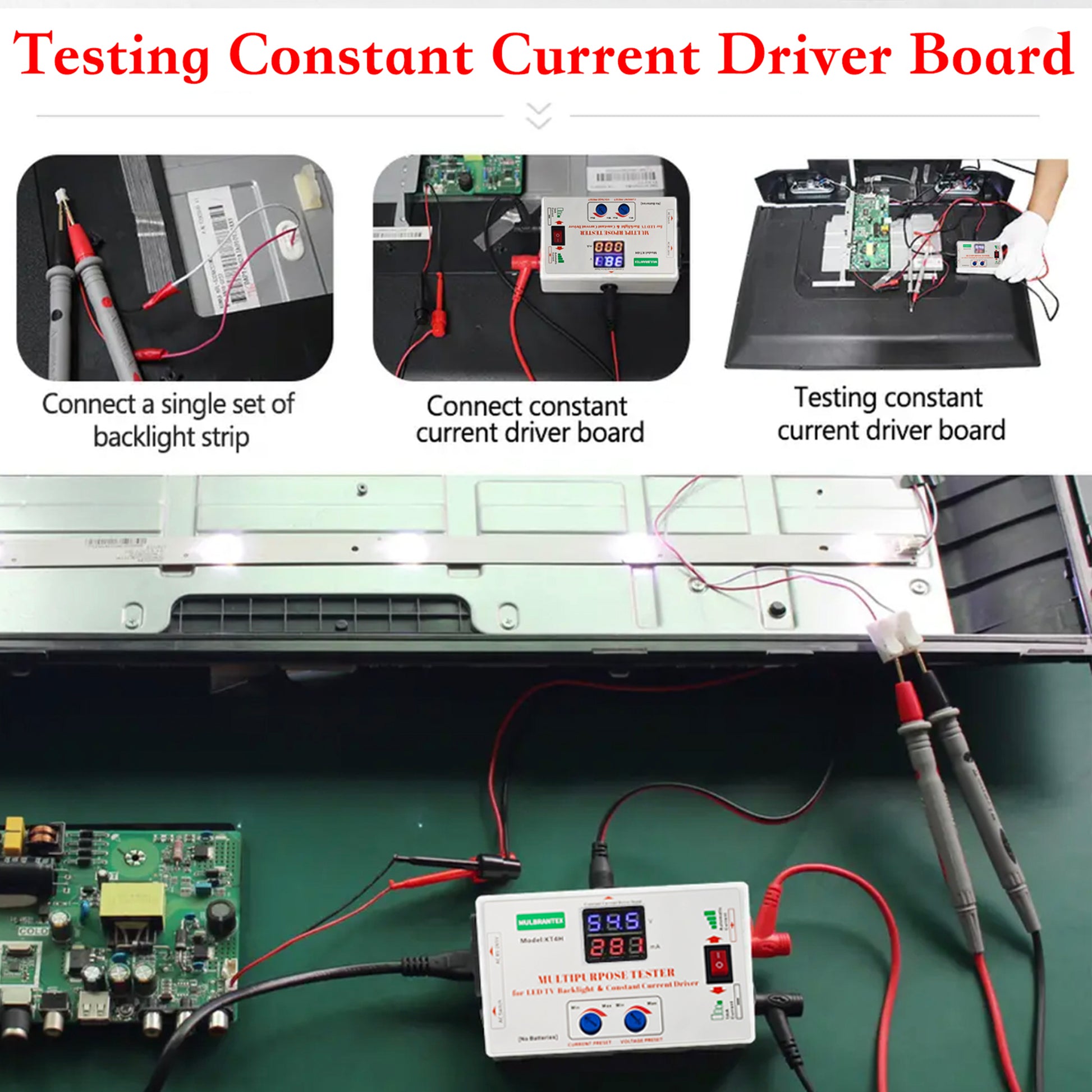 - 【Professional Multi- Functional Tester】This multi tester can perform accurate constant current driver board testing, TV backlight strip testing, and real-time detection of voltage and current of various electronic components with high-precision voltmeter and ammeter. It supports automatic + manual dual mode for voltage and current adjustment, and is also suitable for repairing all LED lights, and can judge faults intuitively (voltage=0 for short circuit, voltage=330V for open circuit).